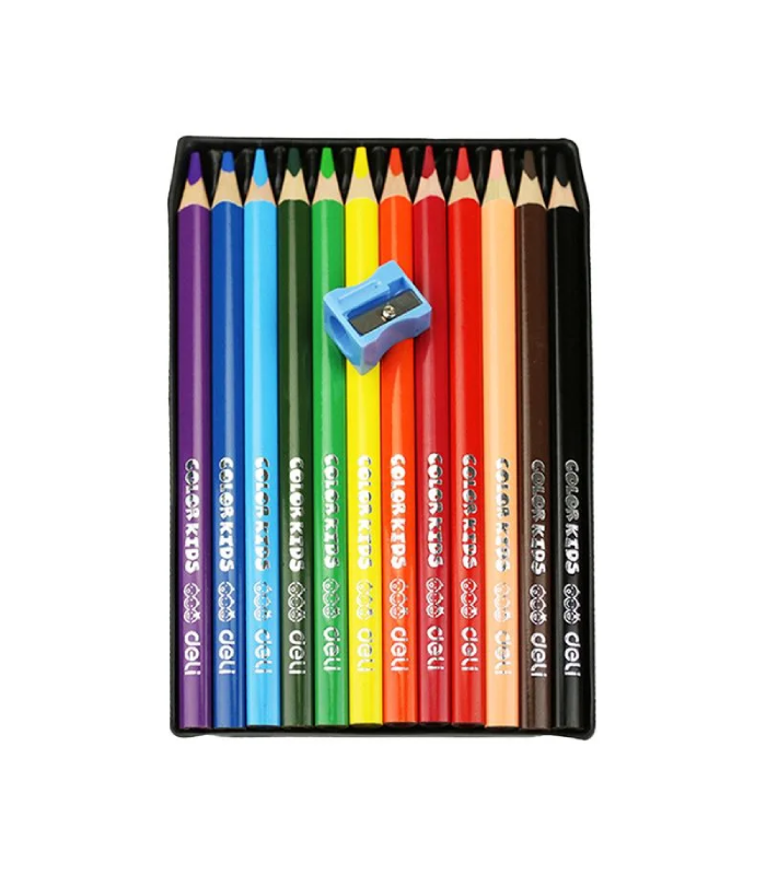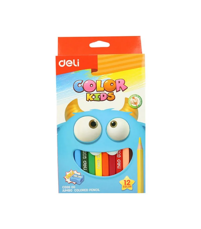 علبة الوان DELI خشب اطفال جامبو 12 لون