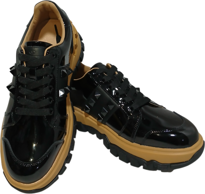 شوز من فالنتينو (bottega veneta) اسود مطرف باللون الاصفر جلد رجالى