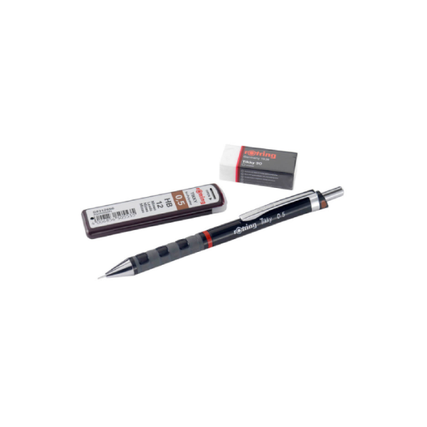 قلم سنون ROTRING مقاس 0.7 ملم واطار خارجي اسود من روترينج (يتضمن 12 سن رصاص + ممحاة)